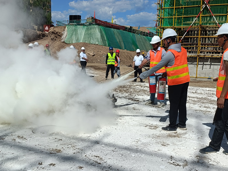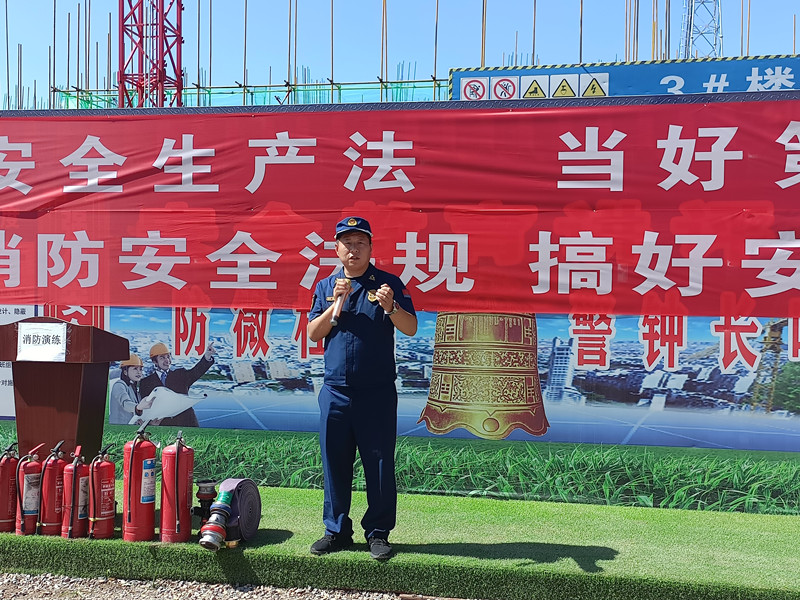在施工现场,县消防大队会同项目部人员开展了消防应急救援演练活动,模拟发生火情后,组织区域安全警戒、现场灭火处置、解救受困人员等场景。整个演练按照预定方案紧张有序实施,救援过程迅速、及时、有效。