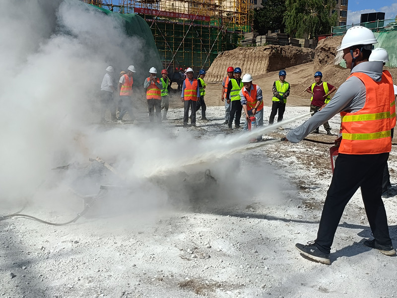 施工现场如何预防事故发生?发生意外伤害时怎样开展医疗急救?如何正确使用灭火器……活动现场,公司邀请合水县消防大队专业人员结合建筑工地生产作业环境复杂、人员复杂等特点,为近百名施工人员作了深入浅出的讲解,并现场示范操作,让大家学到了不少实用的安全知识和技能。