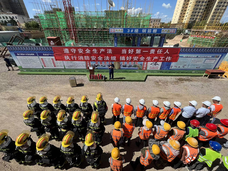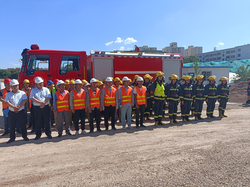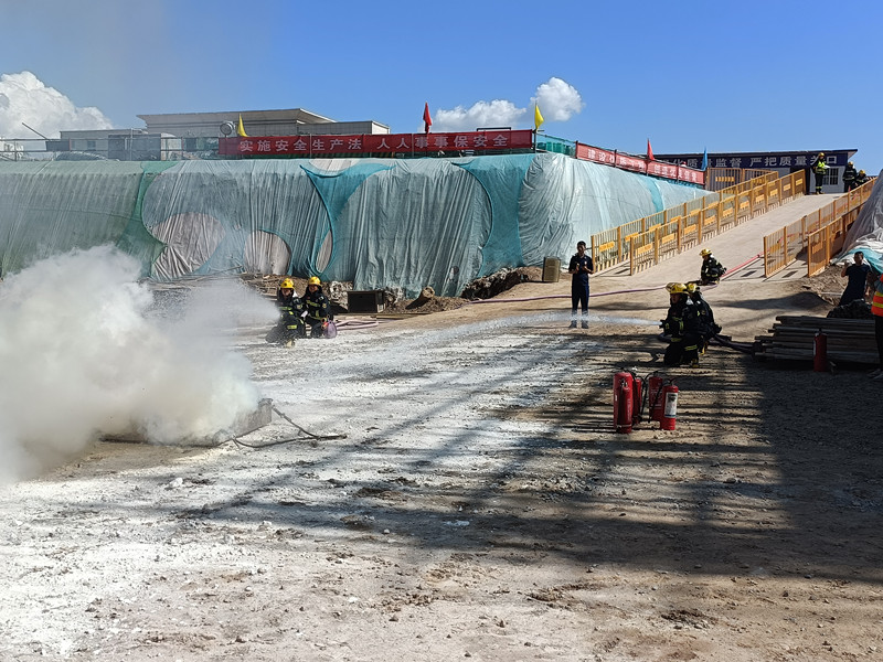 在施工现场,县消防大队会同项目部人员开展了消防应急救援演练活动,模拟发生火情后,组织区域安全警戒、现场灭火处置、解救受困人员等场景。整个演练按照预定方案紧张有序实施,救援过程迅速、及时、有效。