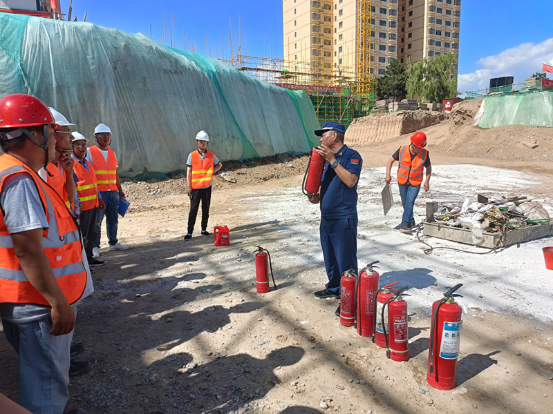 施工现场如何预防事故发生?发生意外伤害时怎样开展医疗急救?如何正确使用灭火器……活动现场,公司邀请合水县消防大队专业人员结合建筑工地生产作业环境复杂、人员复杂等特点,为近百名施工人员作了深入浅出的讲解,并现场示范操作,让大家学到了不少实用的安全知识和技能。